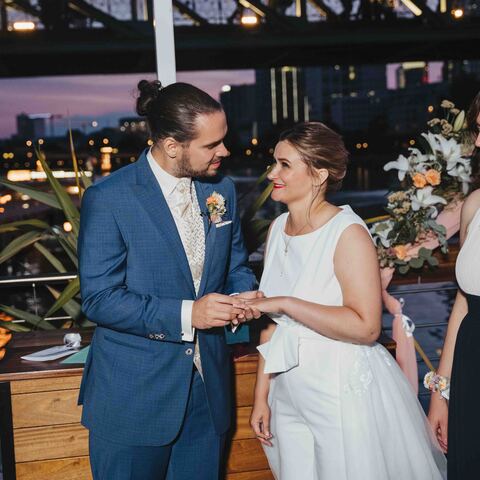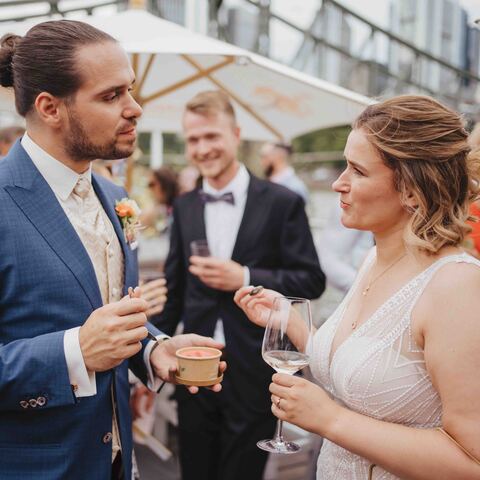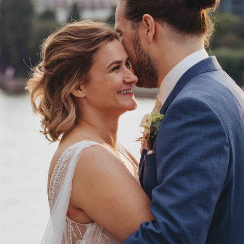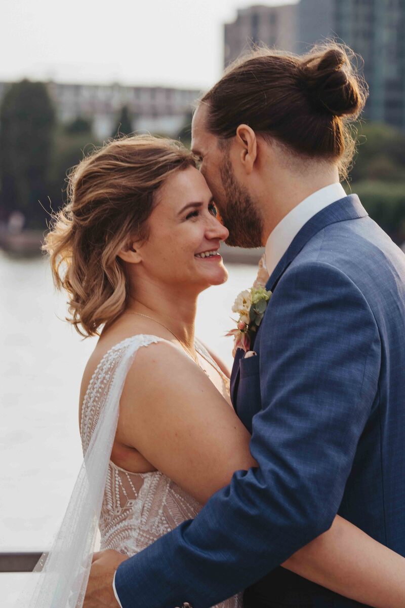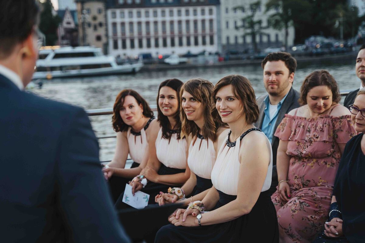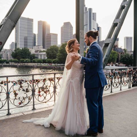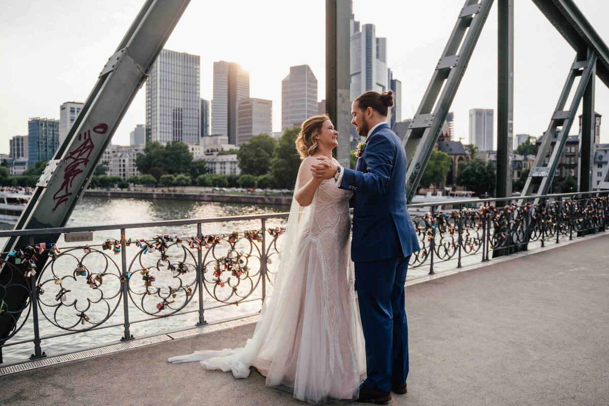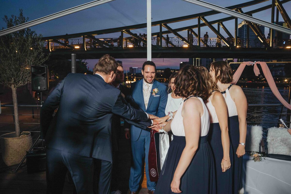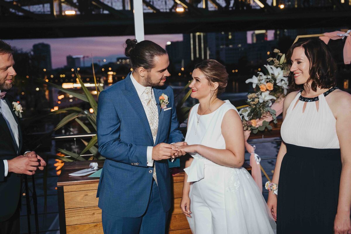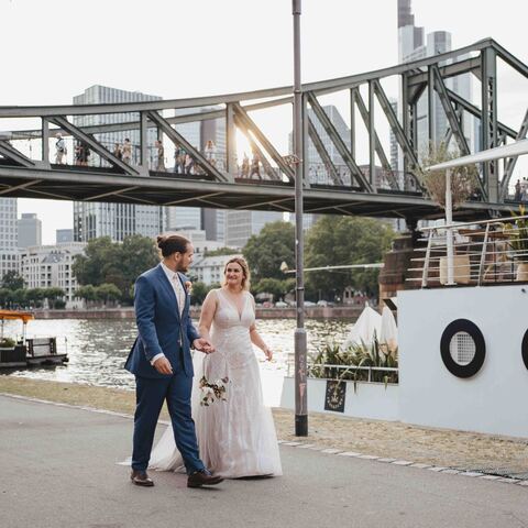 Jenny & Domi gaben sich 2022 ihr Jawort auf dem Boot Freigut in Frankfurt am Main. Direkt am Wasser, mit Blick auf die eindrucksvolle Skyline, entstand eine besondere Hochzeitslocation mitten in der Stadt – urban, stilvoll und gleichzeitig entspannt. Diese Hochzeit am Main vereinte Hafenflair und Großstadtromantik auf einzigartige Weise und bot die perfekte Kulisse für eine moderne Hochzeitsreportage in Frankfurt. Nach einer emotionalen Trauung auf dem Boot feierten Jenny & Domi gemeinsam mit Familie und Freunden einen unvergesslichen Tag voller Herzlichkeit. Vom Sektempfang an Deck über das Abendessen mit Blick auf den Main bis hin zu ausgelassenen Feiermomenten bei Sonnenuntergang – jeder Teil dieses Tages war geprägt von Emotionen und authentischen Augenblicken. Die Skyline und das Lichtermeer der Stadt machten die Atmosphäre besonders und zeigen, wie vielseitig und einzigartig Hochzeiten in Frankfurt sein können. Diese Hochzeit am Main wurde in einer modernen Hochzeitsreportage begleitet – mit echten Emotionen, besonderen Details und authentischen Momenten mitten in Frankfurt. In dieser Galerie zeigen wir euch die schönsten Impressionen dieser urbanen Hochzeit direkt am Wasser. Wer eine besondere Hochzeitslocation in Frankfurt sucht, findet hier Inspiration für eine Hochzeit am Main – modern, individuell und unvergesslich.